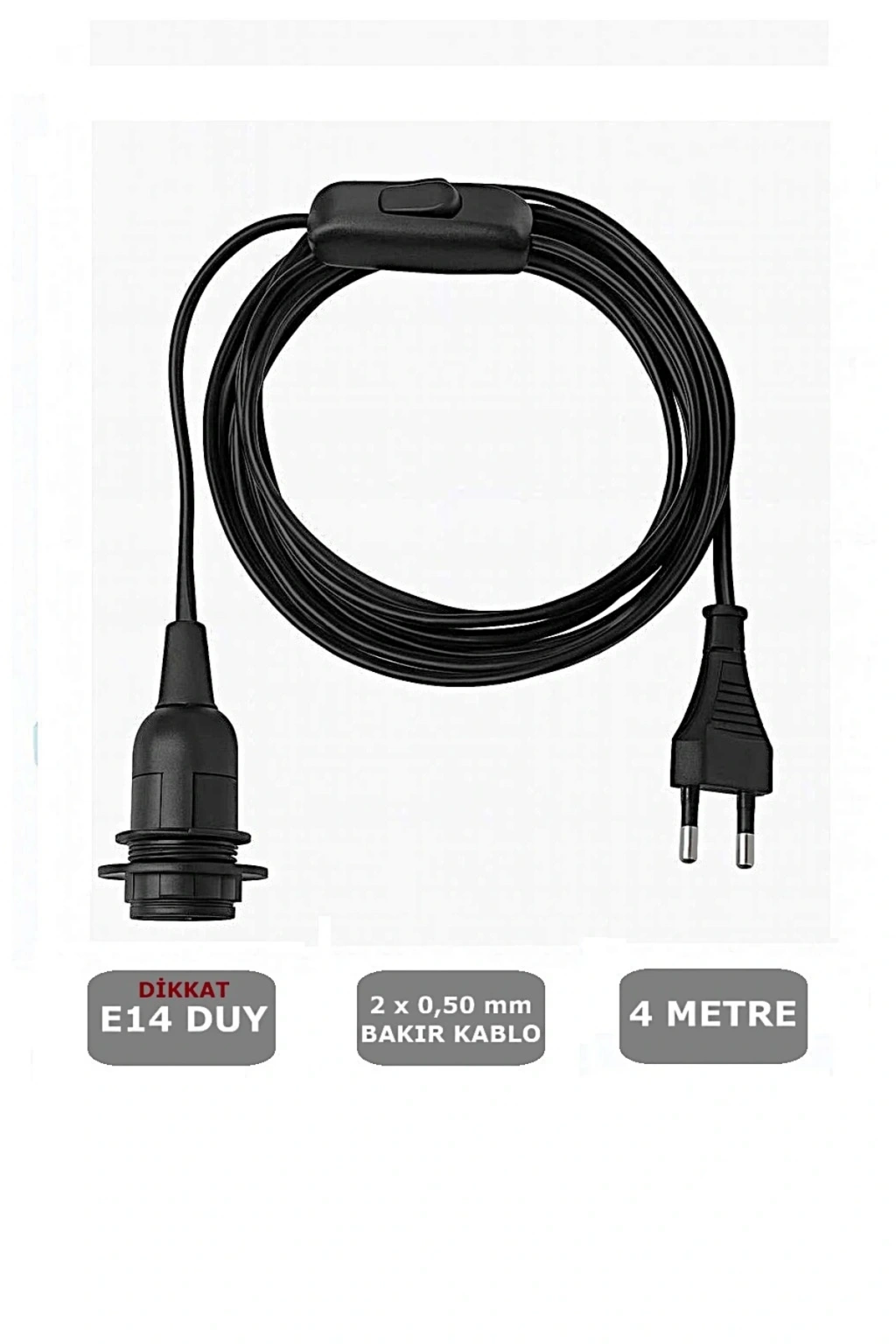 - DİKKAT E14 MİNİ DUY STANDART AMPULLER İÇİN DEĞİLDİR - 4 metre uzunluğundaki Arapuarlı (aç-kapat anahtar) fişli abajur lambader duy, evinizin her köşesine kolayca yerleştirilebilir ve istediğiniz zaman kullanımınıza hazır hale getirilir.; - E14 (2x0,50) uyumlu bu lambader duy, geniş bir aydınlatma seçeneği sunar.; - Siyah renk tasarımı ile modern ve şık bir görünüm sağlayarak mekanınızın dekorasyonuna zarif bir dokunuş ekler.;