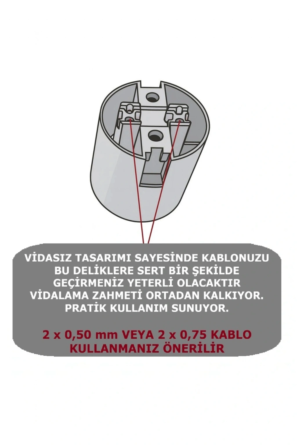 - E27 tip ampul ile uyumlu, geniş kullanım alanına sahip İtalyan tip avize.; - Vidasız geçmeli tasarımı sayesinde kolay montaj imkanı sunar ve zaman kazandırır.; - Avize Lambader duyu halkası sayesinde, Avize ve lambaderinizle uyumlu bir görünüm sağlar ve montaj kolaylığı sunar.; - Kablo kilidi özelliği ile güvenli ve düzenli bir kablo yönetimi sağlar, elektrikli cihazlarınızın güvenliğini artırır.; - Beyaz renk seçeneğiyle modern ve şık bir dekorasyon stili oluşturur.; - Max: 250 Volt 4 Amper