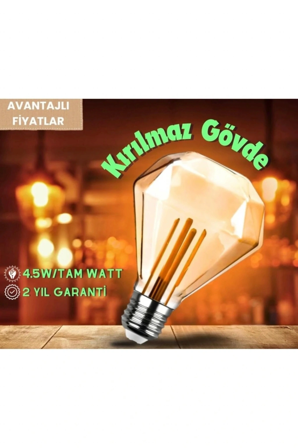- 4,5 Watt 2700K Amber GENEL AYDINLATMA İÇİN DEĞİLDİR.; - 500 lümen 15.000 saat - Rustik tasarımı ile evinizin dekorasyonuna vintage bir dokunuş ekler.; - Kırılmaz plastik gövdesi sayesinde uzun ömürlü kullanım sunar.; - Sarı ışık renk sıcaklığı, rahatlatıcı ve sıcak bir atmosfer yaratır.; - E27 duy tipine sahip olması, geniş uyumluluk sağlayarak kolay montaj imkanı tanır.; - 4,5 watt enerji tüketimiyle düşük maliyetli aydınlatma çözümüdür