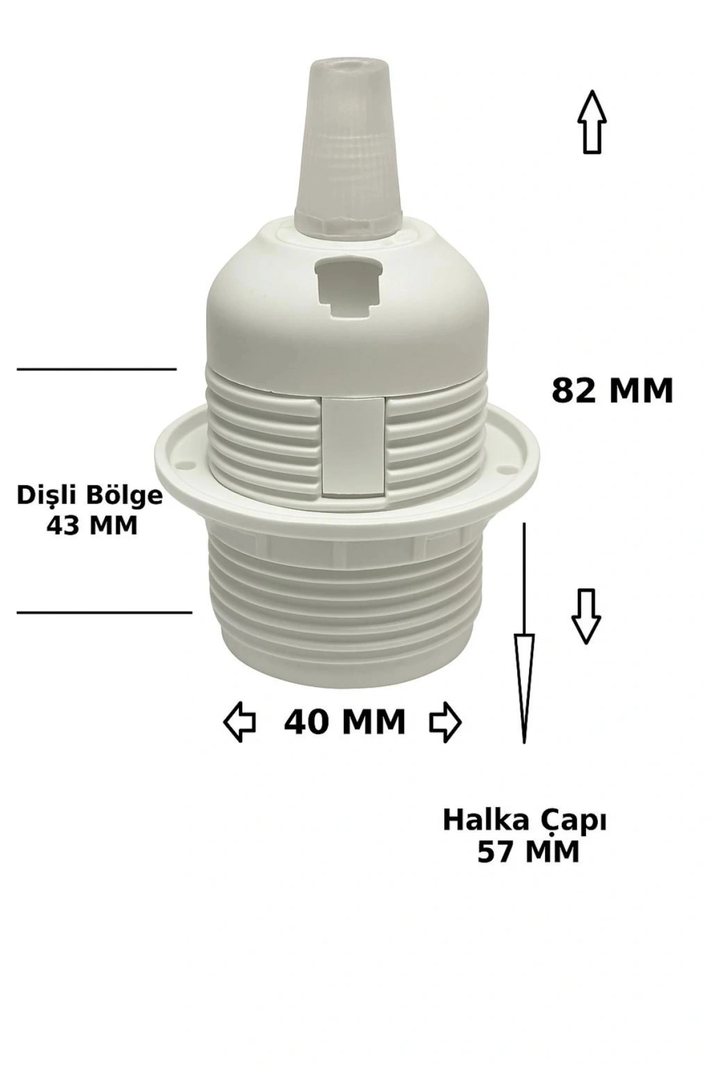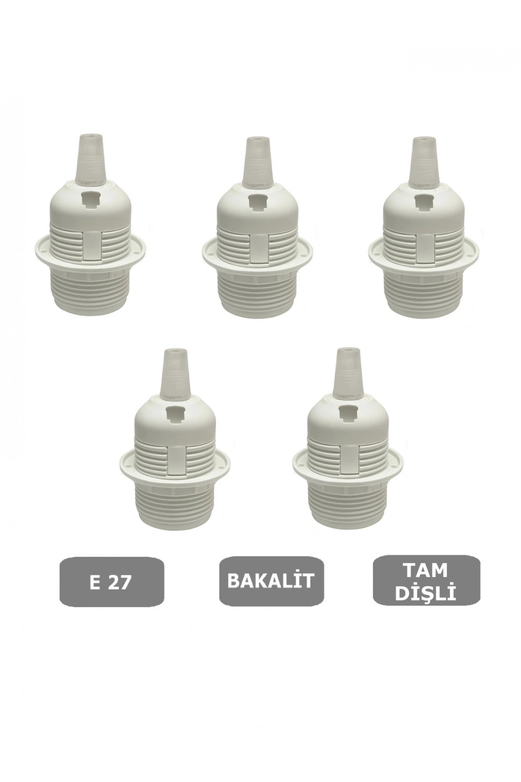 - E27 tip ampullerle uyumlu, geniş kullanım alanı sunan geçmeli tam dişli duy.; - Kablo kilitli yapısı sayesinde güvenli ve sabit bir bağlantı sağlar, olası elektrik tehlikelerini minimize eder.; - Beyaz renk seçeneği ile modern ve şık bir görünüm kazandırır, dekorasyonunuza kolayca uyum sağlar.; - 5 adetlik paket içeriğiyle birden fazla aydınlatma ihtiyacınızı tek seferde karşılar.; - Max 250 Volt 4 Amper