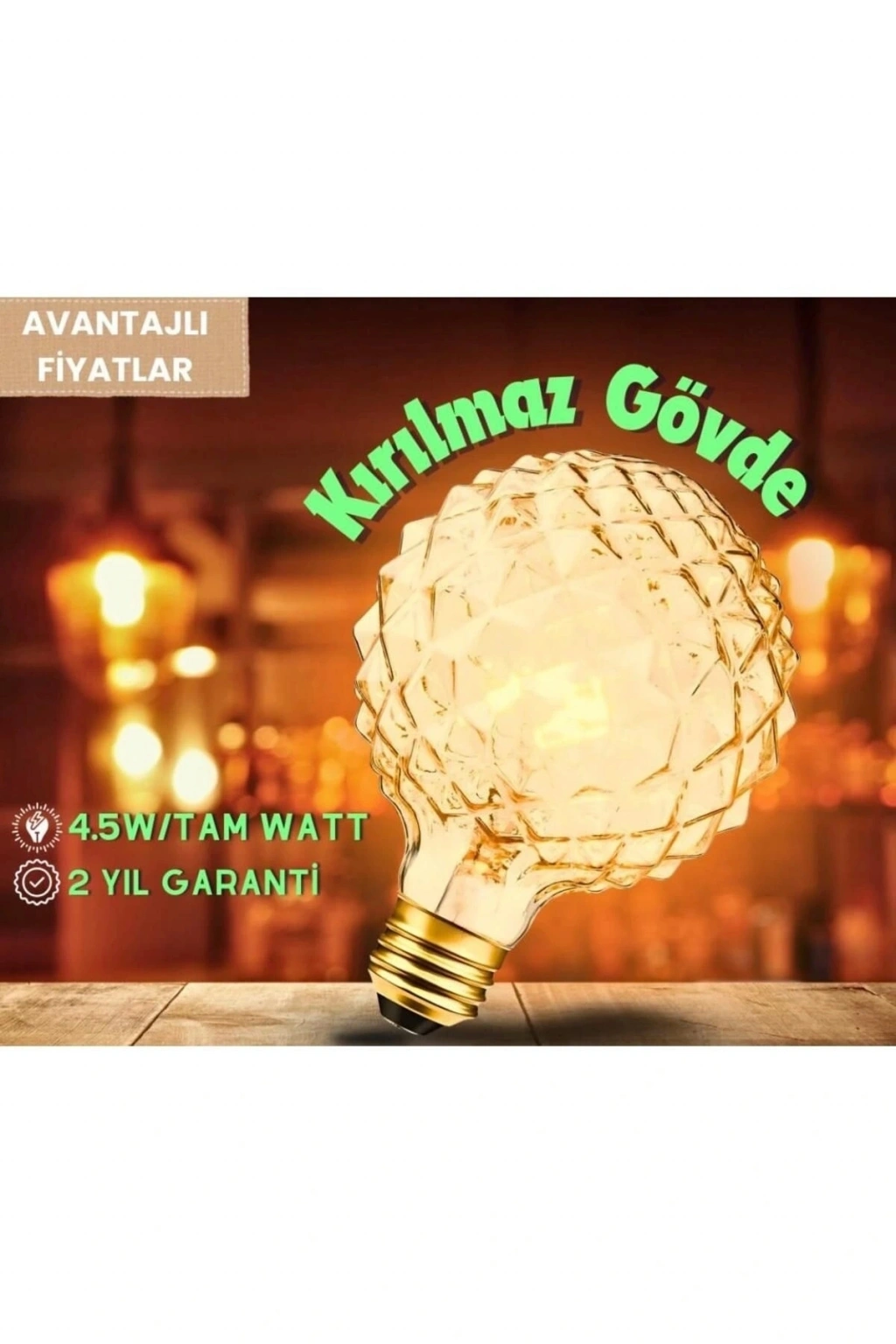 - 4,5 Watt 2700K Amber GENEL AYDINLATMA İÇİN DEĞİLDİR.; - 500 lümen 15.000 Saat - Rustik tasarımı ile evinizin dekorasyonuna vintage bir dokunuş katar.; - Kırılmaz plastik gövdesi sayesinde uzun ömürlü kullanım sunar.; - Sarı ışık renk sıcaklığı, rahatlatıcı ve sıcak bir atmosfer oluşturur.; - Enerji sınıf aralığı A'dan G'ye kadar olan bu ampul, enerji tasarrufu sağlar.; - Rustik ampul teknolojisiyle geleneksel aydınlatma deneyimini modernize eder.; - E27 duy tipi, geniş uyumluluk ve kolay montaj imkanı tanır.; - 4,5 watt güç tüketimi ile düşük enerji harcaması yaparak elektrik faturalarınızda tasarruf etmenizi sağlar